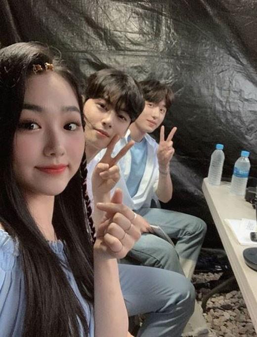 공개된 사진 속에는 강미나, 차은우, 찬희의 모습이 담겼다. 머리에 집게핀을 꽂고 손가락으로 하트를 그리고 있는 미나와 깜찍하게 브이 포즈를 취하고 있는 차은우, 찬희의 모습이 귀여움을 자아낸다.