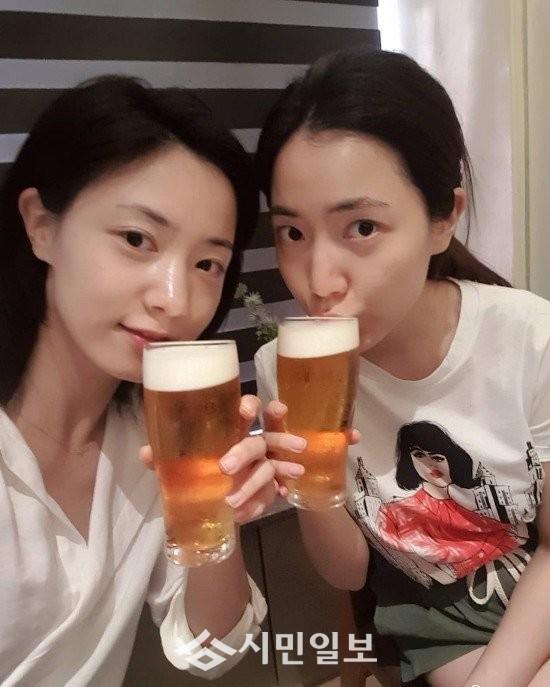 공개된 사진 속에는 화영 효영 자매가 시원하게 맥주를 한 잔 들고 있다.