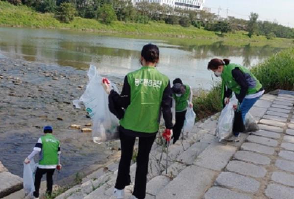 | ▲ 광주환경공단 임직원들과 자발적으로 참여한 시민들이 추석맞이 광주천 환경정화를 위해 쓰레기 수거 작업을 하고 있다. / 광주환경공단 제공 |