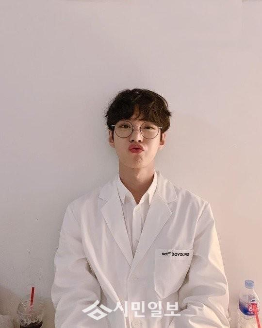 사진 속 도영은 가운을 입은 채 입술을 쭉 내밀고 있다.