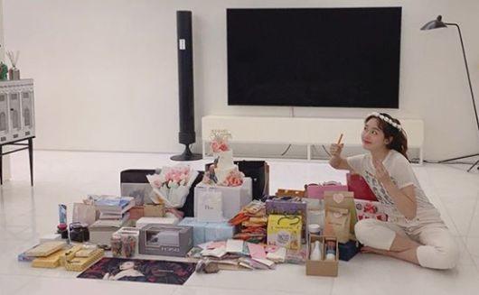 공개된 사진 속에는 팬들이 보낸 선물에 둘러싸인 성유리의 모습이 담겨있다. 성유리는 팬들이 보내 준 선물 앞에서 장난기 넘치는 표정을 지으면서 사랑스러운 매력을 드러냈다.