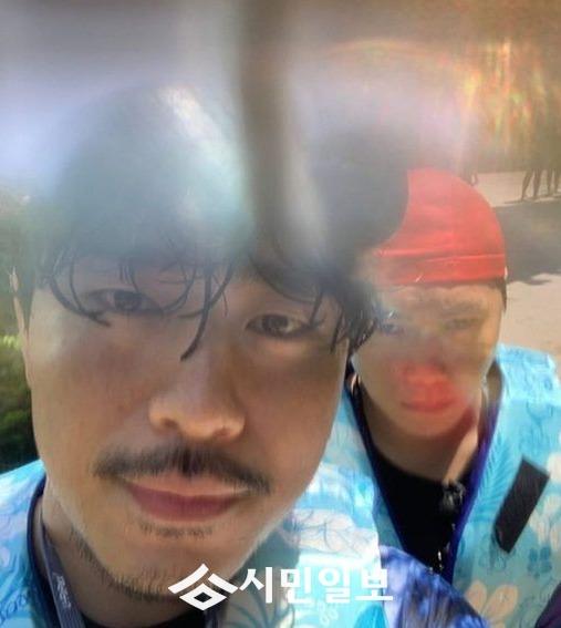 공개 된 사진 속 송진우는 동료 배우 이시언과 워터파크에서 즐거운 시간을 보내는 모습이다.