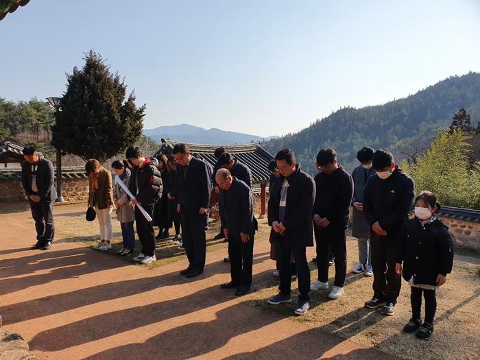 장흥군 지역경제과는 지난 20일 안중근 의사 순국 110주년을 맞아 정남진장흥토요시장상인회와 함께 해동사 참배의 날을 가졌다. 이날 참배는 정남진장흥토요시장상인회장, 상인회 임원, 지역경제과 직원 등 30여 명이 참석하여 안중근 의사를 추모하고 의사의 뜻을 기렸다. 사진은 참여자들이 참배하는 모습.(사진제공=장흥군청)