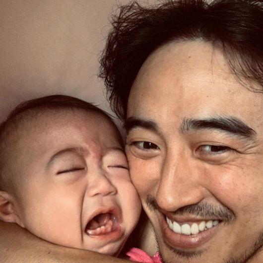 공개된 사진에는 남편 정성윤이 두 아이를 안고 행복한 표정을 짓고 있다. 반면 딸 모아 양과 아들 이온 군은 얼굴을 찡그리고 있어 웃음을 자아낸다.