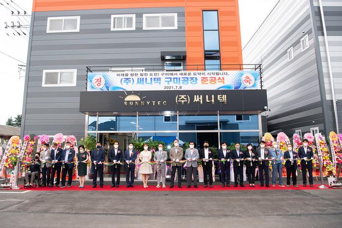 장세용 경북 구미시장이 지난 8일 구미국가1산업단지에서 열린 (주)써니텍 '구미공장 준공식'에 참석했다. 이날 준공식에는 장 시장을 비롯해 안주찬 구미시의회 부의장 및 시의원, 김영호 중소기업협의회 회장 등 내외빈 60여명이 참석해 (주)써니텍의 구미공장 준공을 축하했다. 사진은 장 시장(가운데)이 참석자들과 테이프 커팅을 하고 있는 모습.(사진제공=구미시청)