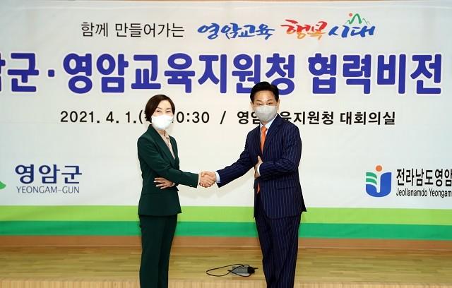 [영암=정찬남 기자] 전남 영암군은 지난 1일(목) 영암교육지원청 대회의실에서 전동평 영암군수와 김성애 영암교육장 및 관계자들이 참석한 가운데 ‘미래인재 육성을 위한 교육협력 비전’을 공동 발표했다.