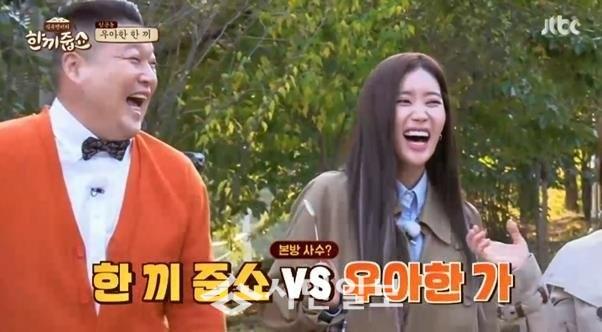 이날 임수향은 강호동과 이경규에게 “우리가 경쟁 프로그램이었다. 우리가 ‘한끼줍쇼’ 시청률을 많이 빌려 갔다고 하더라. 돌려드리려 왔다”라고 말했다.
