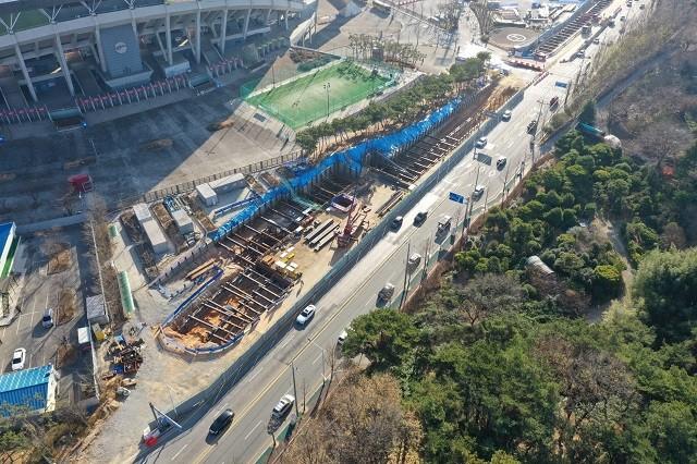| ▲ 광주광역시 월드컵경기장 주변 도시철도공사 작업 현장 모습 / 광주광역시 제공 |