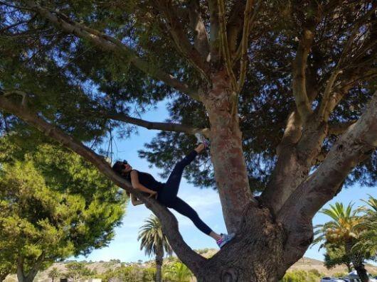 라이머 아내 안현모가 나무 위에 올라 사진을 찍었다.