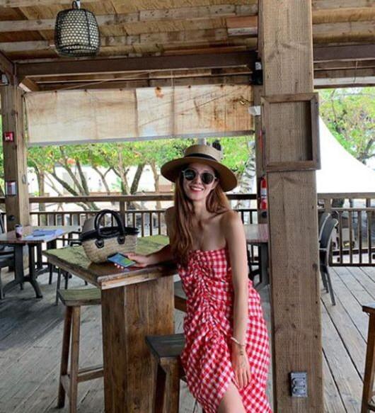 공개된 사진 속 김성은은 야외 바에서 여유로운 시간을 보내고 있는 모습이다. 김성은은 빨간 체크 원피스를 입고 늘씬한 자태를 뽐내고 있어 눈길을 끈다.