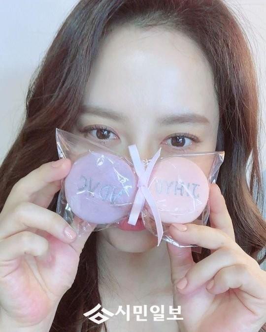 공개된 사진 속에는 마카롱을 든 송지효의 깜찍한 모습이 담겼다.