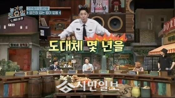 신동엽은 휴학중인 대학생 분장을 하고 등장했다. 이에 개그우먼 박나래는 "총장님하고 동갑인 거 같다. 20년 휴학한 거 아니냐?"라고 말해 웃음을 선사했다.