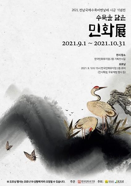 | ▲ 전남도-강진군 주최 2021 전남국제수묵비엔날레 '수묵을 담은 민화전' 전시 포스터 / 한국민화뮤지엄 제공 |