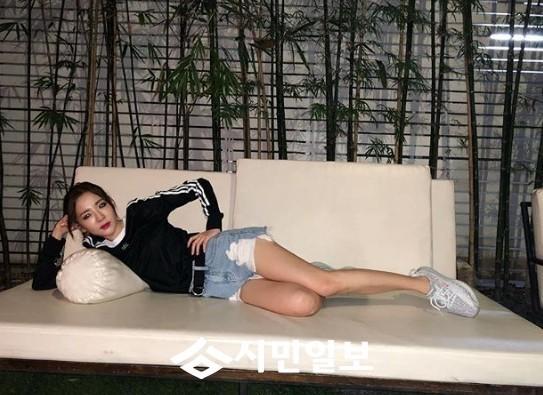 사진 속 산다라박은 아찔한 한뼘 핫팬츠에 마네킹 몸매를 뽐내고 있다.