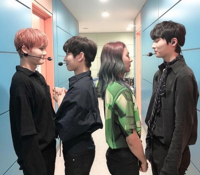 리미트리스의 공식 인스타그램에는 "쇼챔피언 비하인드의 비하인드❣️ ‘복도가 좁으니까 가까이 붙어주세요!’의 결과물????????"이라는 글과 함께 사진이 게재됐다.