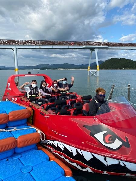 | ▲ '강진에서 일주일 살기' 가우도 제트보트 승선 관광객들 / 사진=강진군 제공 |