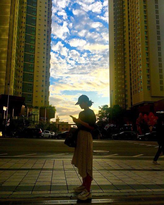 사진 속 전소미는 고층 아파트 단지를 배경으로 서서 핸드폰을 보고 있다. 역광 속 전소미는 모자를 눌러쓰고, 굽높은 운동화에 스커트를 입은 모습이다.