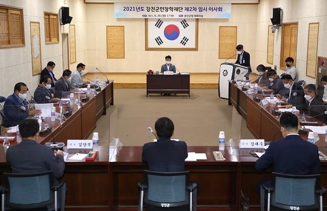 [강진=정찬남 기자] 전남 강진군민장학재단(이사장 이승옥)은 지난 28일 강진군청 대회의실에서 2021년도 제2차 임시이사회를 개최했다.