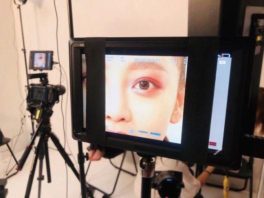 구하라는 23일 자신의 SNS에 사진 한 장을 올렸다. 공개된 사진 속에는 촬영 현장이 담겨 있고, 카메라 화면에는 구하라의 눈이 담겨 있다.