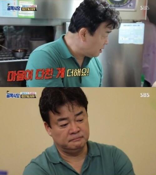 백종원은 “그러니까 잘 좀 해달라”면서 “다른 식당에 본보기 되어야 한다. 이런 가게를 본 그들에게 희망이 생길까. 두 분 보다 더 힘든 사람이 많다. 그 힘든 사람들이 에너지를 받으려 온다. 힘든 이들이 포기하지 않고 버틸 수 있는 희망이 되길 바랐는데 진짜 마음 아프다”며 눈물을 흘렸다.