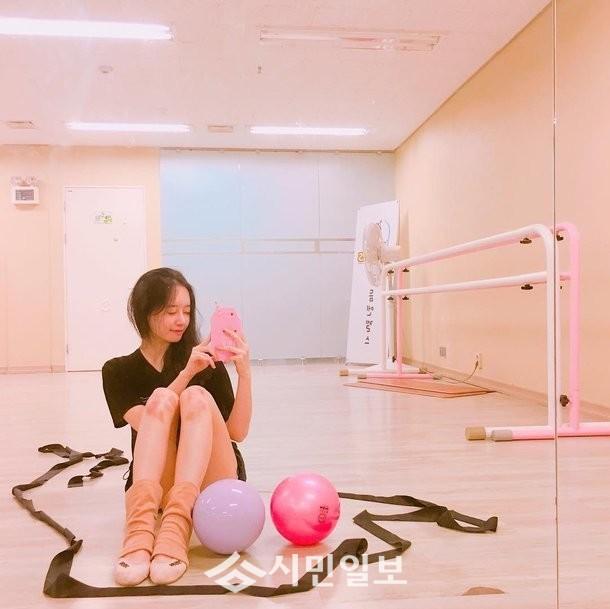 공개된 사진 속 김유지는 편안한 의상을 입고 리듬체조 종목인 볼과 리본을 연습하는 모습으로 시선을 사로잡았다.