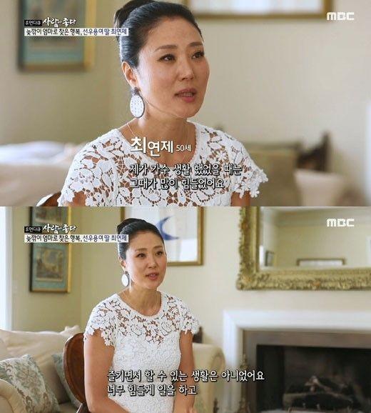 지난 6일 방송된 MBC '휴먼다큐 사람이 좋다'에서는 결혼 후 미국 LA에서 생활하고 있는 최연제의 모습이 공개됐다. 이날 최연제는 남편 케빈과 결혼 11년 만에 얻은 아들 이튼을 소개했다.