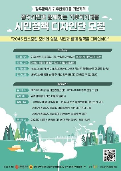 기후위기대응 시민정책디자인단은 기후변화와 탄소중립, 그린뉴딜정책에 관심이 있는 10대 이상 광주시민이면 누구나 지원할 수 있다.