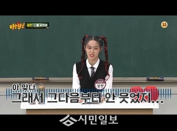 최근 방송된 JTBC 예능 프로그램 '아는 형님'(이하 ‘아형’)은 걸그룹 AOA(설현, 지민, 혜정, 유나, 찬미)가 전학생으로 찾아온 모습을 그렸다.