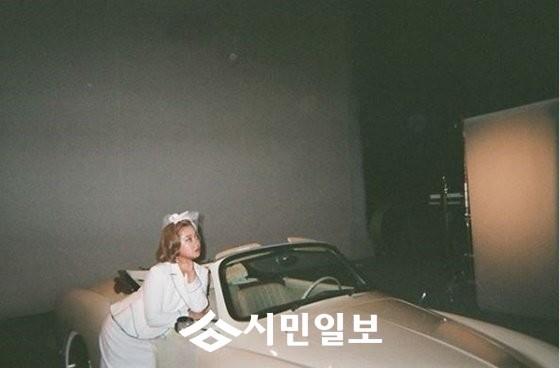 공개된 사진 속 박나래는 자동 차 앞에서 하얀색 의상을 입은 채 먼 산을 바라보는 모습이 담겨있다.