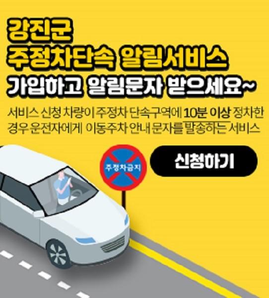 | ▲ ‘불법주정차 단속 사전 문자 알림 서비스’ 신청 배너 / 강진군 제공 |