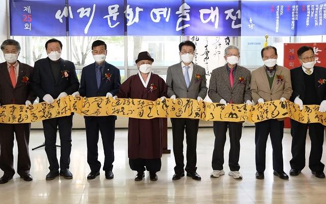 이번 제25회 세계문화예술대전은 전국에서 출품된 작품 중 수상작을 선정하는 공모전과 대한민국 저명작가, 전·현직 정치지도자 및 서예계의 중견 작가, 세계문화예술대전 초대작가 작품 등 510