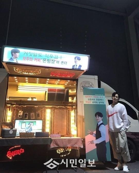 사진 속 온주완은 팬들이 보내준 커피차 앞에서 포즈를 취하고 있는 모습으로 훈훈함을 자아냈다.