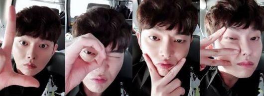 공개된 사진에는 손가락으로 L.O.V.E를 표현해 사진을 찍고 있는 윤균상의 모습이 담겨있다.