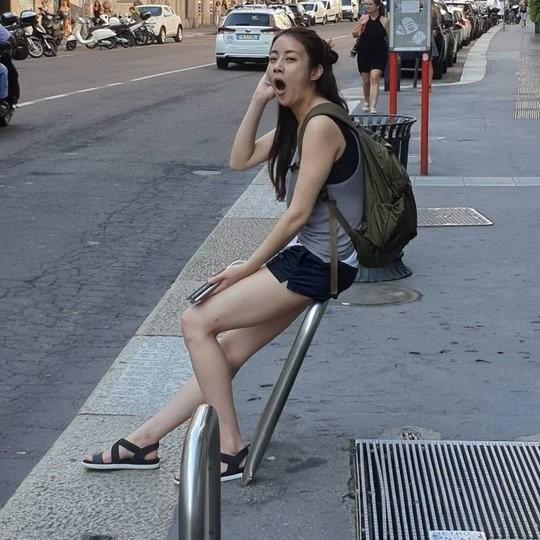 사진 속 강소라는 운동복 차림에 오래 걸은 듯 잠시 앉아 하품을 하고 있다. 특히 강소라의 긴 팔과 앉아있어도 긴 105cm 롱다리가 눈길을 사로잡는다.