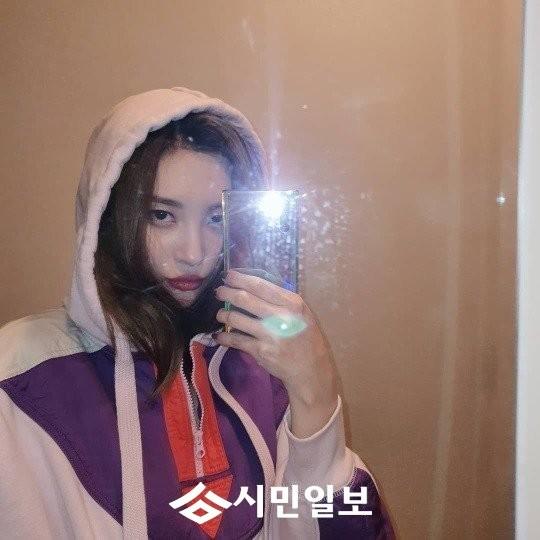 공개된 사진 속 선미는 후드 티셔츠의 모자를 머리에 쓰고 포즈를 취하고 있다.