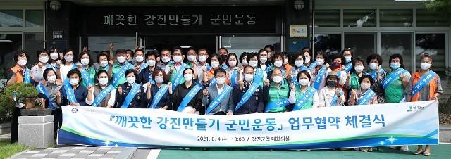 강진군에서는 지난 4일 군청 대회의실에서 12개 사회단체 임원 등 40여명이 참석한 가운데 ‘깨끗한 강진만들기 군민운동 업무협약식’을 갖고 환경보전에 대한 실천의식 고취에 함께 노력하기로 했다.