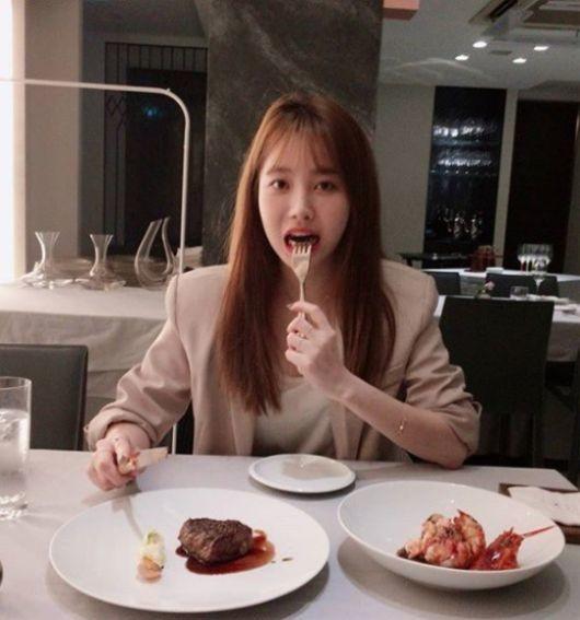 공개된 사진 속 유라는 한 식당에서 스테이크를 썰고 있다. 직접 먹방을 선보이고 있는 모습이 사랑스럽다. 청순하면서도 발랄한 근황이다.