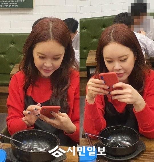 공개된 사진 속 백지영은 전주를 방문해 콩나물국밥을 시식 후 인증샷을 남기고 있는 모습.