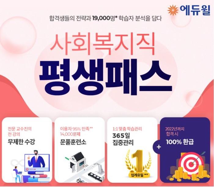 [시민일보 = 여영준 기자] 종합교육기업 에듀윌(대표 박명규)이 사회복지직 9급공무원 시험을 준비하는 수험생을 위해 혜택을 더한 ‘평생패스’ 과정을 선보인다.