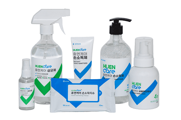 휴엔케어 손소독제는 KFDA 식약처의 공식 허가제품으로, 의약외품으로 분류된다. 68%의 알코올 농도로 손 소독 효과를 확인할 수 있으며 휴대용 및 비치용으로 용량을 달리 하여 용도에 따라 손쉽게 구분하여 사용할 수 있다. 휴엔케어 손소독티슈 또한 믿을 수 있는 성분으로 제조되어 살균력 99.9% 테스트를 완료한 제품으로 안전성과 함께 높은 살균효과를 보인다.
