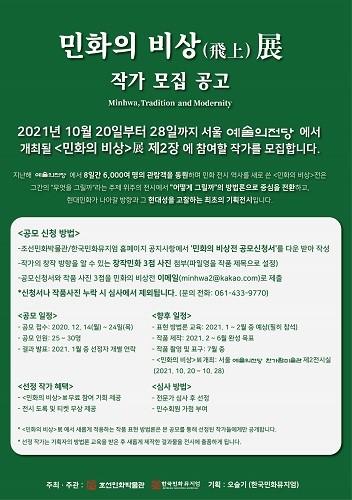 선정된 작가에게는 “한국의 민화”전 무료 참여 기회와 전시 도록 및 티켓이 무상으로 제공된다.