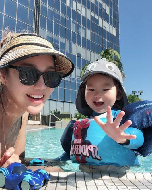 공개된 사진 속에는 수영장에서 어린 아들과 함께 여유를 즐기고 있는 유리의 모습이 담겼다. 환하게 웃고 있는 유리의 모습이 인상적인 가운데 아들 역시 유리와 닮은 미소를 짓고 있다.