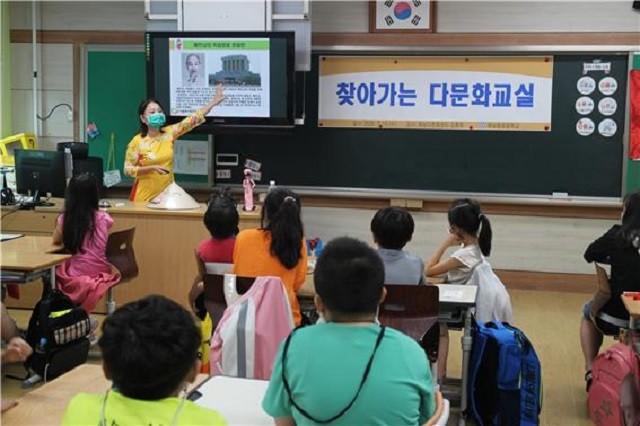 교실 한쪽에는 베트남 국기 금성홍기와 우리나라 국기 태극기를 나란히 세워두고, 베트남 전통의상을 입은 강사 선생님이 우리나라 말과 함께 베트남어를 구사한다. 이 활동을 통해 학생들은 언어와 문화적 차이에 대해 이해하며 다양한 문화에 대해 긍정적인 인식을 가질 수 있게 됐다.