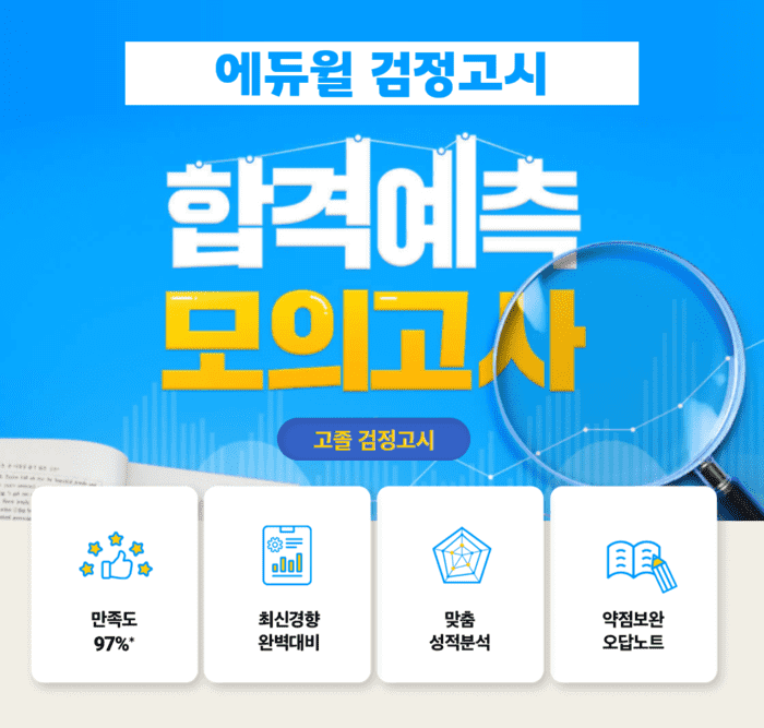에듀윌 검정고시 모의고사는 실전 훈련을 통해 학습을 마무리할 수 있는 프리미엄 합격 서비스로, 수강생 만족도 97%를 달성한 바 있다.
