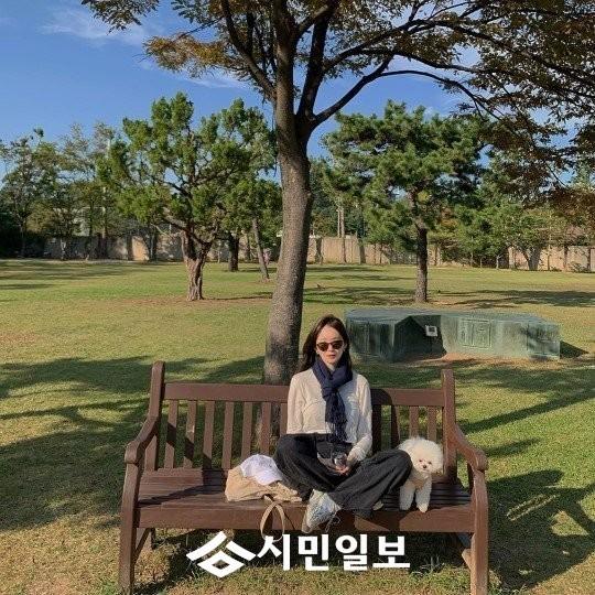 게재된 사진 속 강민경은 반려견과 산책에 나선 모습이 담겨있다.