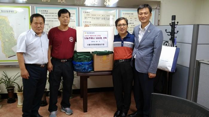 은행잎을 담기 위해 사용된 나눔주머니는 봉제인의 권익 보호와 지역경제 활성화에 기여하고 있는 서울의류봉제협동조합(이사장 박귀성)에서 후원한 것으로, 서울의류봉제협동조합은 지역 주민을 위해 마직으로 직접 나눔주머니 500개를 제작해동에 기부했다.