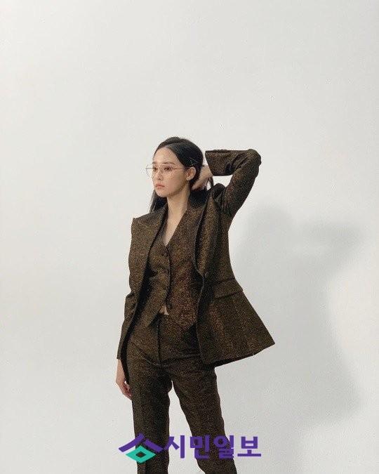 공개된 사진 속 이주연은 브라운 수트를 입고 안경을 써 세련미를 뽐냈다.