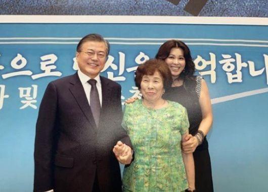 공개된 사진 속 홍지미는 자신의 어머니와 함께 문재인 대통령을 만나고 있다. 문재인 대통령과 홍지민 어머니의 꼭 잡은 손이 시선을 사로잡는다. 자랑스러운 순간을 남긴 홍지민의 얼굴에서도 웃음꽃이 가득하다.