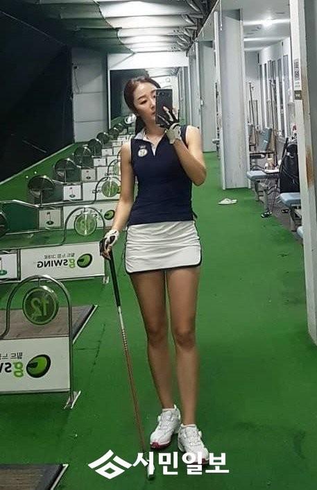 공개된 사진 속 김경화는 실내 골프장에서 운동을 마치고 인증샷을 남기고 있다.