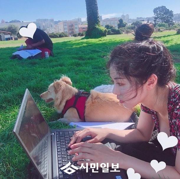 공개된 사진 속에는 서동주가 넓은 잔디에 누워 노트북을 하는 모습이 담겨있다.